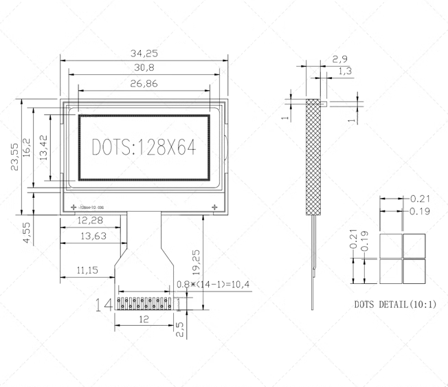 1.4 inch COG128×64 LCD screen ST7567 dot matrix graphic display with backlight
