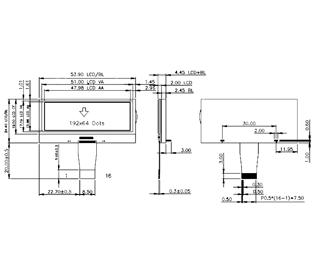 - Display area: 47.98×15.98mm