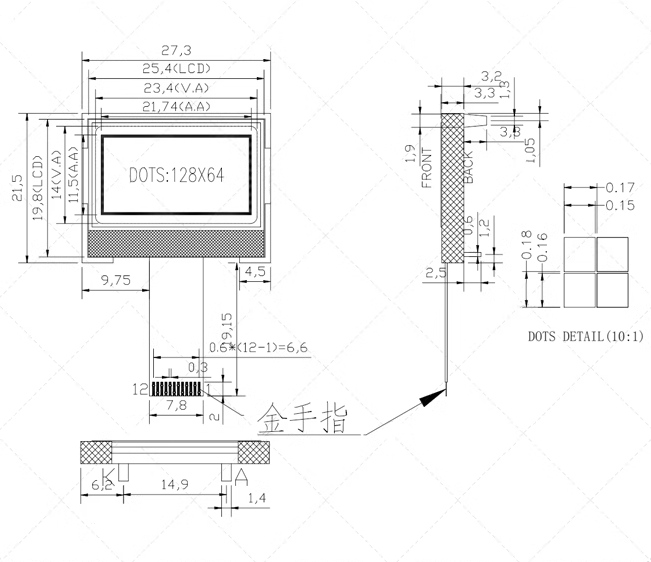 0.96 inch COG128×64 welding FOG LCD screen 3.3V fingerprint lock ST7567