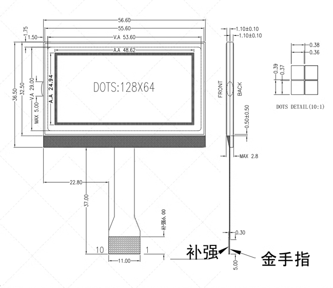 2.4 inch COG128×64 plug-in LCD screen