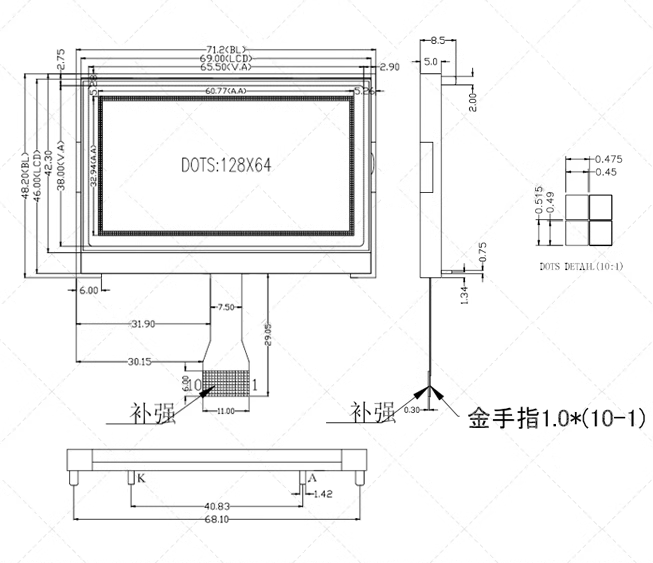 2.8 inch COG128×64 LCD screen