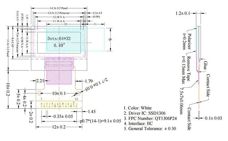 0.49 Inch 64×32 Mini Oled Display I2C Display Color Small Flexible Oled Touch Screen Display