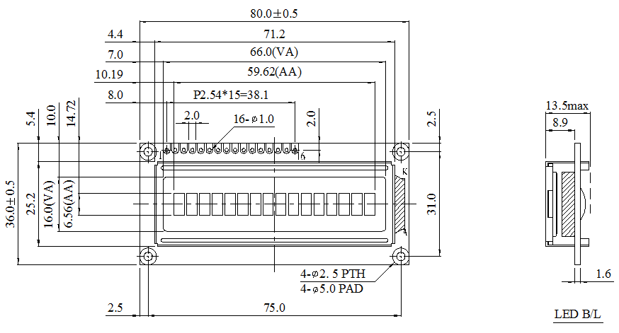 - Module Dimension : 80.0 x 36.0 x 13.5 (MAX) mm