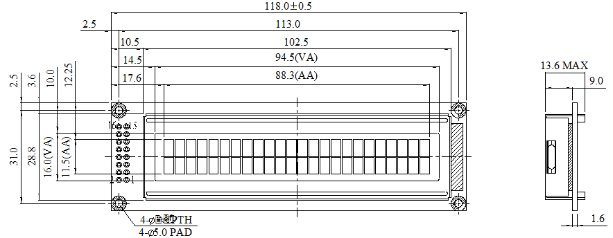 - Module Dimension : 118.0 x 31.0 x 13.6(MAX) mm