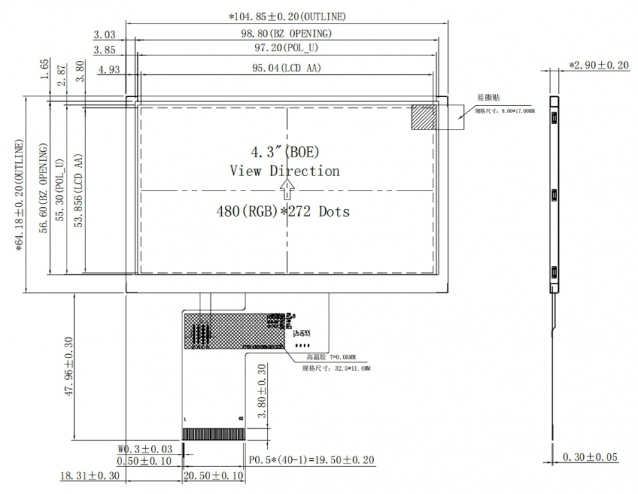 4.3 inch LCD screen 480x272 resolution RGB interface capacitive touch LCD display
