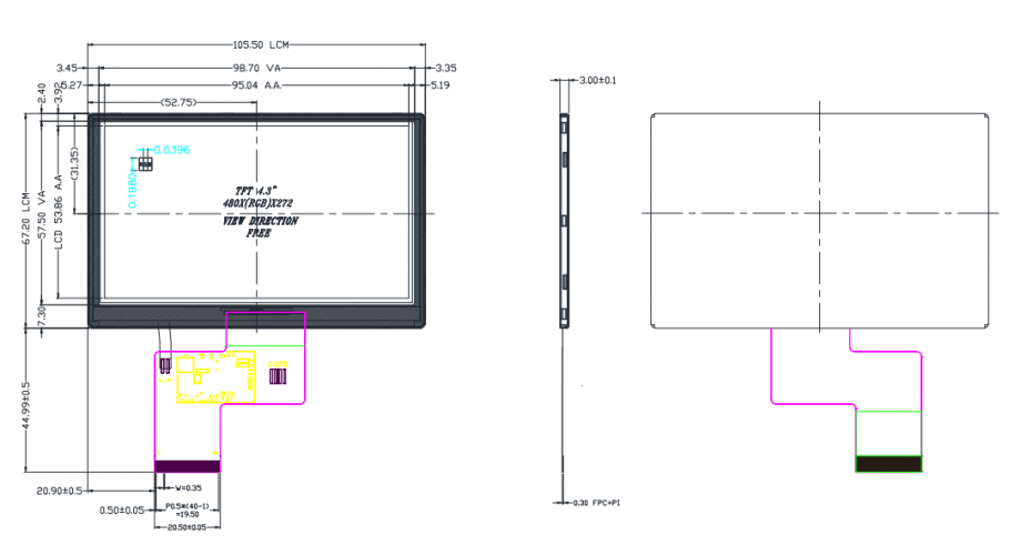 4.3 inch LCD screen 800×480RGB&LVDS interface full viewing angle ultra-wide temperature TFT-LCD LCD module