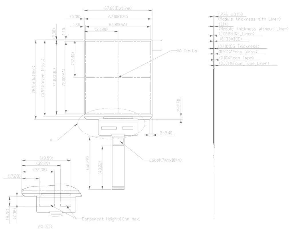 3.81" 1080x1200 AMOLED High Resolution - MIPI