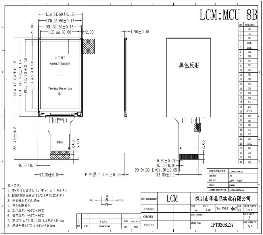 2 Inch TFT LCD IPS Module 240*320 Interface with MCU for Display Applications