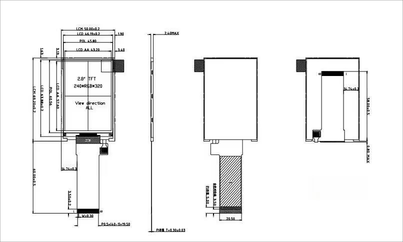Smart Display Screen 2.8 inch IPS Lcd Module 240x320 Resolutions RGB ST7789V2 TFT Touch Screen