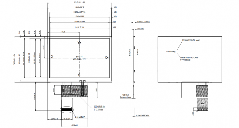 5.0 inch LCD screen IPS type 480×272 TFT LCD module wide viewing angle wide temperature range capacitive touch screen