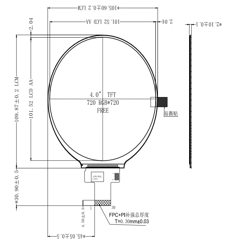 4.0-inch 720*720 HD circular display IPS full viewing angle