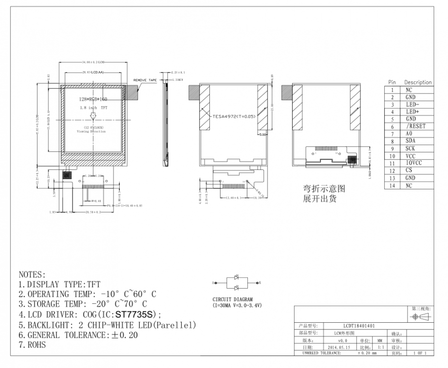 High Quality Factory Accessories Wholesale 1.77 Inch 128×160 TFT Lcd Screen Replacement Display Lcd Touch Screen
